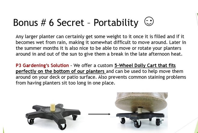 5 Wheel Dolly Cart (Fits on the Bottom of our Planters)